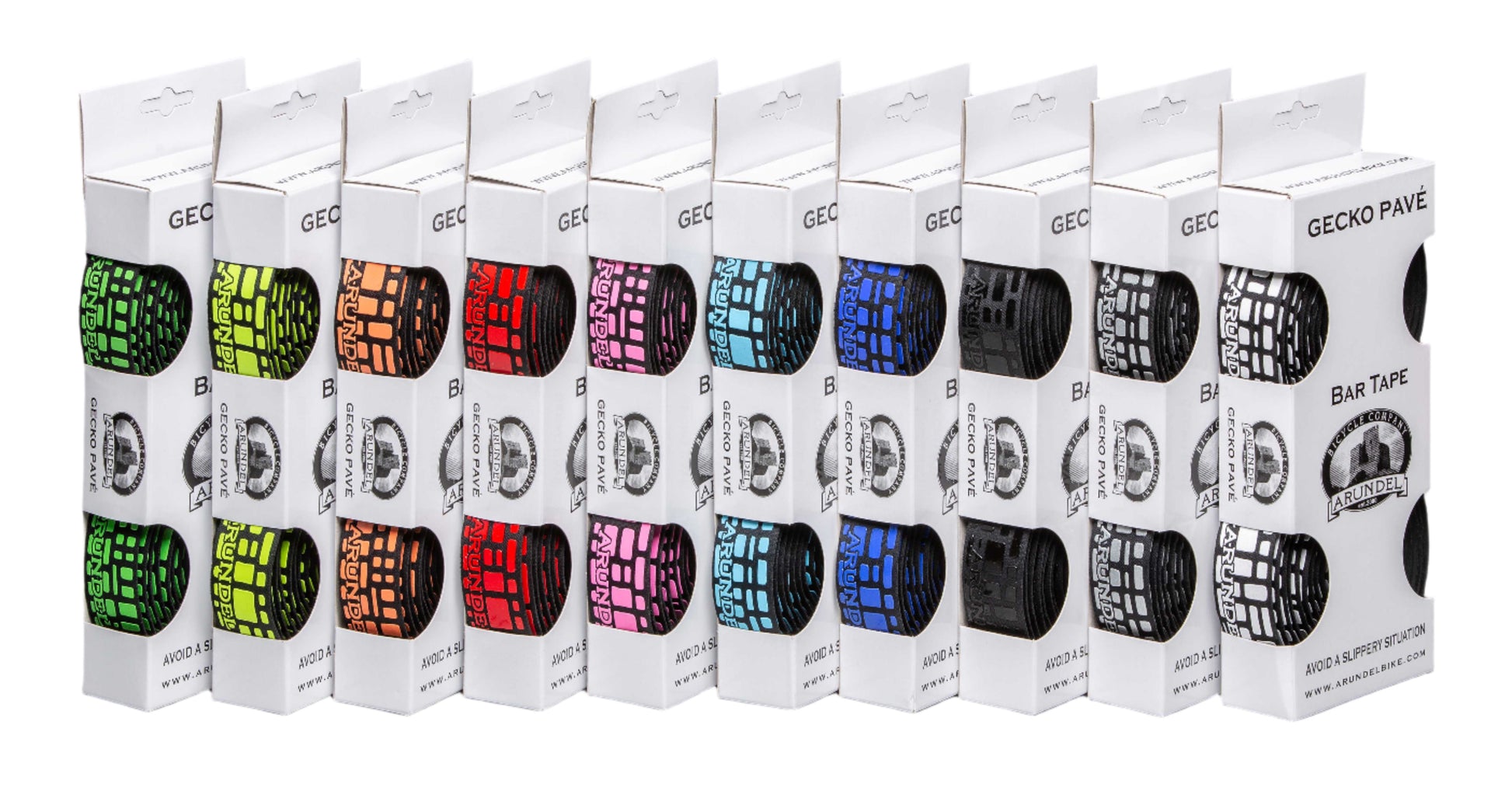 Gecko Pavé is a fabric and EVA foam base bar tape, topped with a layer of printed silicone. Applying a thin layer of silicone made it possible to for us to produce a bar tape that is of similar weight to our Gecko Grip, while retaining the grippiness and overall feel of a pure silicone tape.