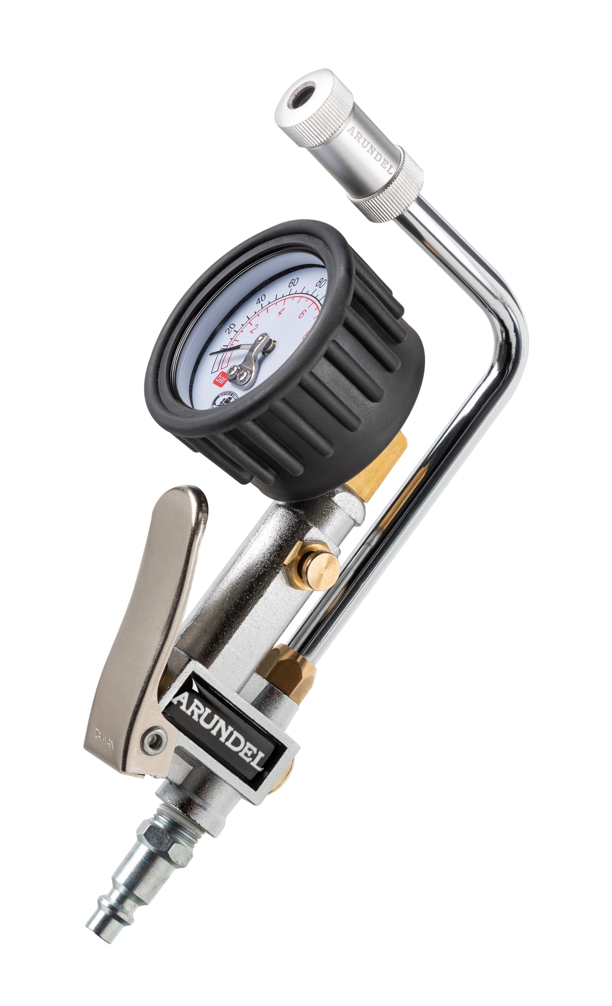 Pump less, ride more! For use with home or shop compressors, this hand-held inflator is compatible with Presta valves and comes complete with a Woodsman pump head. By use of a clever valve plunger within the Woodsman head, the gauge shows actual tire pressure rather than air hose pressure.